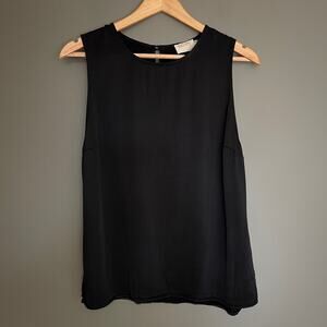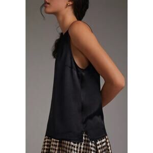 NATION LTD Uma High Neck Muscle Tank Black Sz Large Satin Silky Blouse Chic Sexy