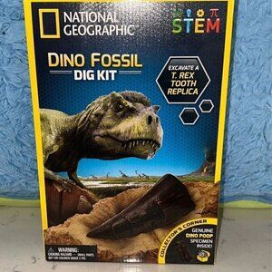 The National Geographic Dino Fossil Dig Kit is a thrilling hands-on adventure! Your child will experience what it’s like to be a real paleontologist as they excavate a T. rex tooth replica from our new, larger dig brick.