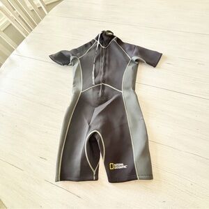 NATIONAL GEOGRAPHIC Men’s Black Gray Scuba Surf Snorkel Neoprene Wetsuit Size S. Excellent pre-owned condition. Minimal signs of wear. No stains, holes or snags. All measurements are approximate.