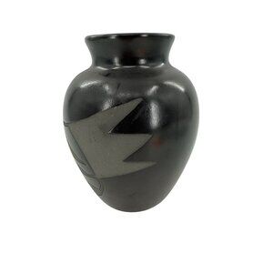 NATIVE AMERICAN BLACKWARE BLACK ON BLACK SIGNED VASE