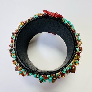 This is an authentic Native American 30 row beaded and 25 tiger eye stones cuff bracelet.