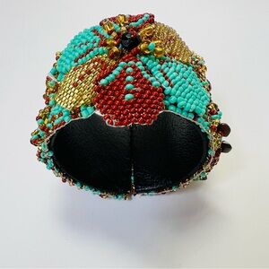 Created with intricate hand beading on a flexible band, this traditional Navajo jewelry is very well made.