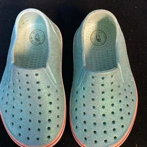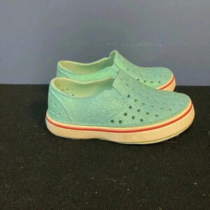 NATIVE SLIP ON SHOES TEAL GLITTER GIRLS SHOES SIZE 7 GOOD CLEAN CONDITION