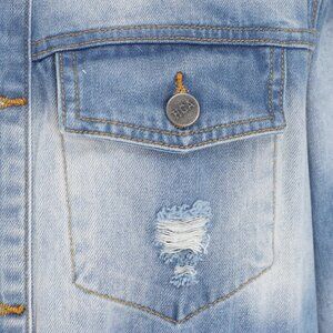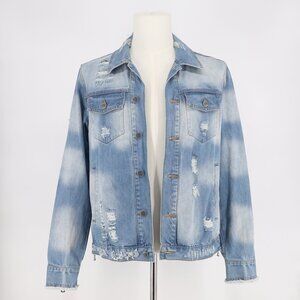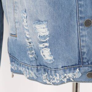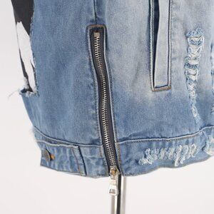 NATIVE SUPPLY HGA Not Today Satan Blue Distressed Denim Jacket Unisex Size S