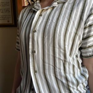 This button up Native Youth shirt has a very 50s vintage feel to it. Its soft and very comfortable. This shirt is branded as a medium, but it feels like a small. The vertical stripes of this shirt is very slimming. A shirt like this is an essential for any wardrobe!!