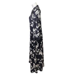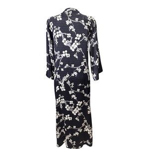 NATORI 100% Silk Black Floral Printed Robe High Neck Kimono Sleeves size XS