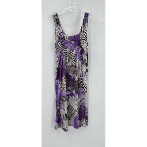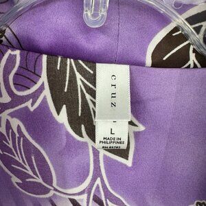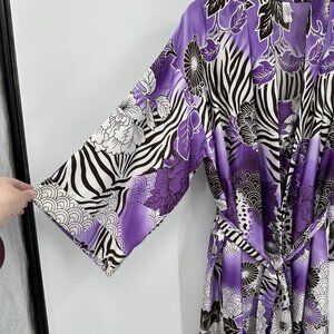 NATORI CRUZ 2 PIECE SET robe slip nightgown satin floral midi kimono purple L