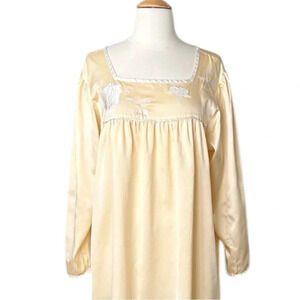 NATORI Classics Vintage Embroidered Nightgown Pajamas Butter Yellow Square Neck