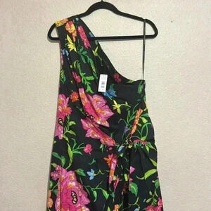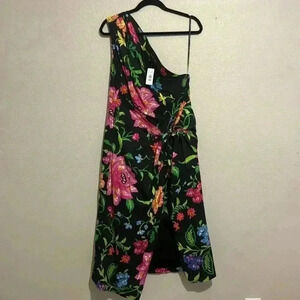 NATORI FLORAL PARTY COTTON POPLIN ASYMMETRICAL ONE SHOULDER DRAPE DRESS