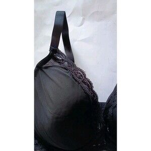 NATORI Lightly Lined Bra Size 32G Black Luxe Lace Contour Plunge Mesh 730023