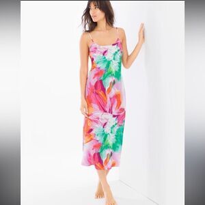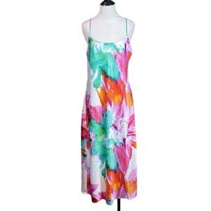 NATORI PARAISO Long Nightgown Watercolor Floral Ethereal Slip Dress