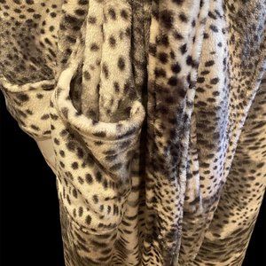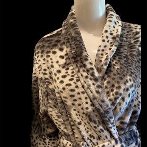 Relax in sumptuous style with a long robe fashioned from plush velour with a wild mix of jungle-cat prints.