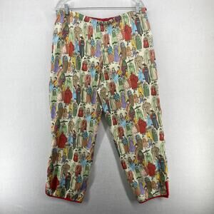 NATORI Pajama Set M Dynasty Print Mandarin PJ Satin Shirt Pants Green Red