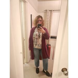 NATORI Purple Plum Knit Long Sleeve Sweater Pocket Cardigan size Medium