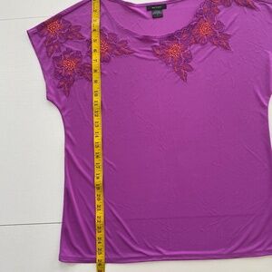 NATORI Short Sleeve 2 Piece Semi Sheer Floral Lace Detail Set Magenta Size M
