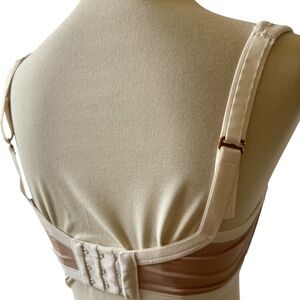 Womens size 32C, light mocha and light ivory color, convertible straps, can be worn straight or crisscross, sports bra, full coverage, molded cups, CoolMax fabric for coolness and comfort, moisture wicking, great for high impact sports,, lightweight stretch foam.