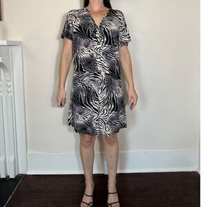 NATORI Zebra Print Short Sleeve Mini Shift Dress Size Small NWT