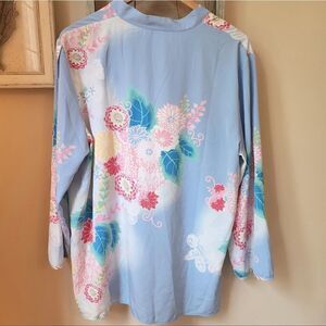 Light blue and pink floral pattern,size Large, 100%Polyester.