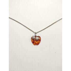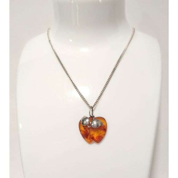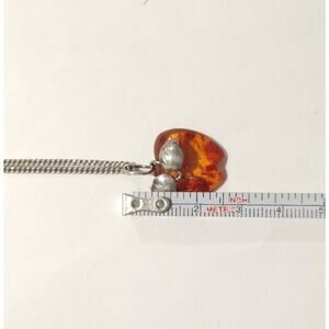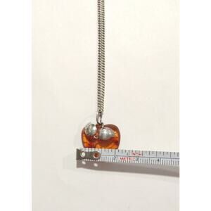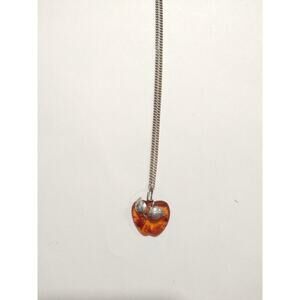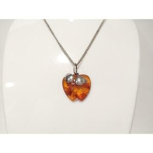 NATURAL BALTIC AMBER STERLING SILVER 950 Apple PENDANT CHAIN NECKLACE VINTAGE