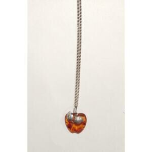 This beautiful necklace features a natural Baltic amber pendant shaped like an apple, hanging from an 18-inch sterling silver chain. The amber stone has a lovely orange color and is round in shape, making it a perfect addition to any collection. The necklace is perfect for any occasion, including Mother's Day, Christmas, anniversary, birthday, and Valentine's Day.