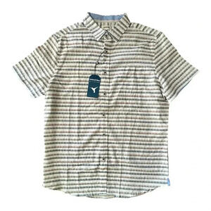 NATURAL BLUE Striped Shirt sz L Brown Blue & White LINEN/COTTON Short Sleeve NWT