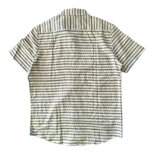 NATURAL BLUE by VISITOR Striped Shirt sz L Brown Blue & White LINEN/COTTON Short Sleeve NWT