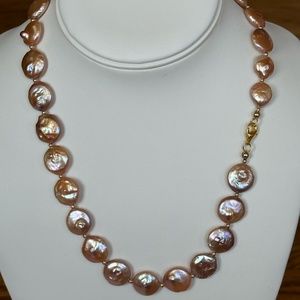 I made this necklace using NATURAL colored coin pearls with very high luster.