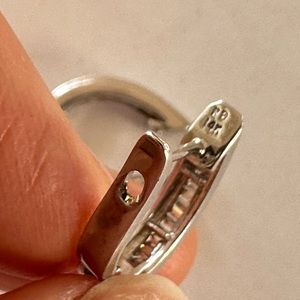 They're baguette cuts set horizonitally in solid 14K white gold hoops.