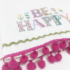 Embroidered with sweet, giftable sentiments, this super-cute Linen Hand Towel makes a perfect hostess or housewarming gift! It features bright colors, rhinestones and the sweet sentiment, "Be Happy". Great for bathrooms, kitchens and more! Makes a great gift for mom, grandma, sister, or friend!