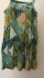 Stylish patchwork camisole with spaghetti straps. Features green and yellow patterns. Ideal for a casual look.