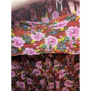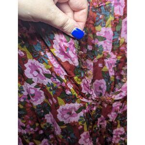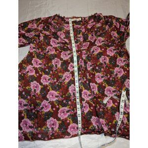 NATURAL LIFE Tunic Top Womens L/XL Multi Floral Print V-Neck Bohemian Peasant