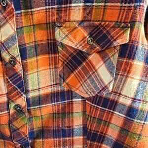 NATURAL REFLECTIONS 100% COTTON PLAID LONG SLEEVE SHIRT SIZE LARGE ORANGE BLUE