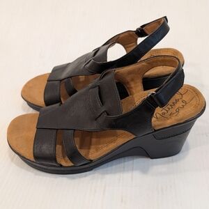 NATURAL SOUL Robin Black Faux Leather Strappy Slingback Wedge Sandals Size 7.5