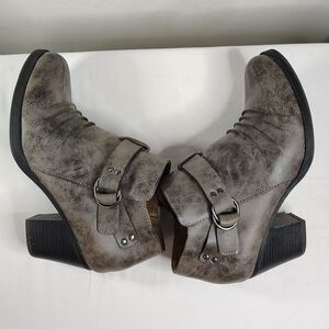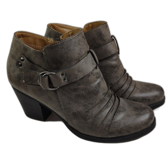 NATURAL SOUL Yeva Faux Leather Stacked Ankle Boots 9.5 Women's Grey Zip Up