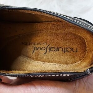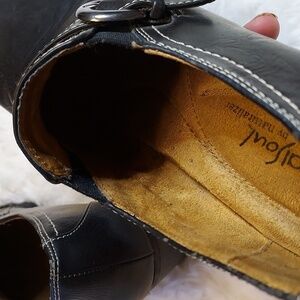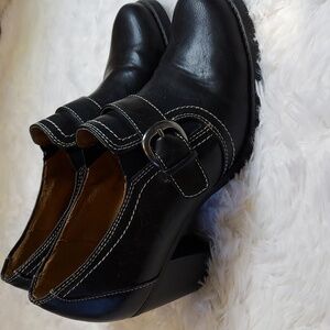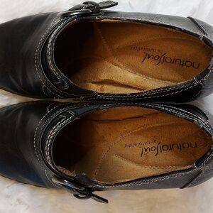 Natural Soul by Naturalizer black chunky heel with a side buckle. Has some normal wear on the inside, but in great condition! heel size is a comfortable 3 inches
