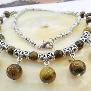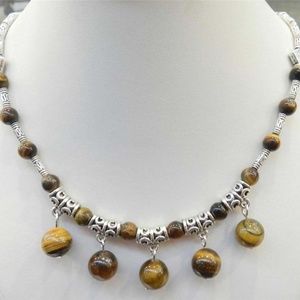NATURAL TIGER'S EYE TIBET SILVER NECKLACE 18