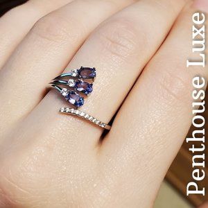 Oval cut tanzanites with brilliant cut A5 cz accents. Natural tanzanite (NOT lab created!). The band and setting are crafted from SOLID 925 sterling silver and engraved "S925". Guaranteed 100% genuine! Ring is adjustable between sizes 6-12. All photos show an actual ring for sale and are property of Penthouse Luxe Jewelry.