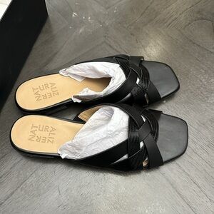 Ease into the weekend comfortable; the Ashford Slide Sandal from Naturalizer is a minimal style with interwoven straps and maximum comfort. Designed with a squared off toe and a low block heel helping to wear what moves you.