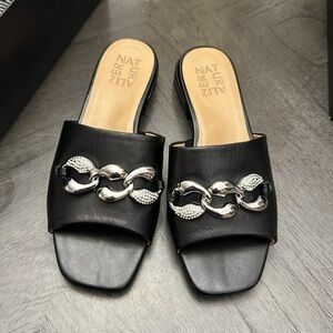 NATURALIZER Angie Womens Leather Square Toe Slide Sandals In Black