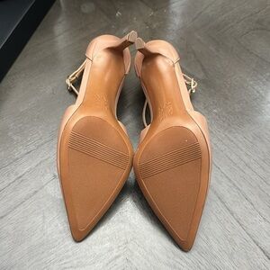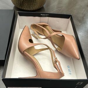 Ready to donne for all the special occasions, this curvy dress pump makes every moment chic. All that's left to do is say, 'yes. ' Get there beautifully. Strappy dress pump with all-day heel. Leather or metallic leather upper with a closed pointed toe. Adjustable buckle closure. Contour+ Comfort technology for a premium fit and all-day comfort experience. Non-slip outsole. 3.25" heel. Consciously packaged: 100% of our shoe boxes are made of 80% recycled paper + soy-based ink. Designed using sustainable materials. WHY YOU'LL LOVE IT: Ingenious elegant utility. All-day heels that scale the height of chic with endless versatility and comfort that is downright clever.