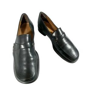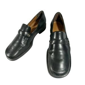 NATURALIZER! BLACK GENUINE LEATHER CLASSIC FRONT INSET HEELED LOAFERS! SZ 7.5M