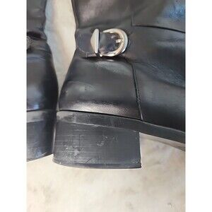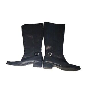 These are high-quality Naturalizer boots for women in size 10, made in Brazil. They feature a square toe, ankle shaft style, and a low block heel (1.75"). The boots are designed with a black leather upper, synthetic lining, and a rubber outsole. They have a zip closure and are ideal for everyday wear with a riding boot style.