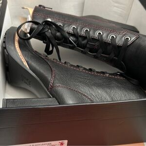 This modern lace-up bootie does it all: keeps you secure with sky-high lace-up styling, ensures an easy entrance with a full-length side zip closure and elevates your look with its bold block heel. Get there beautifully.
