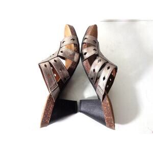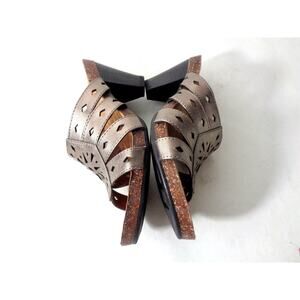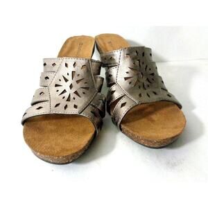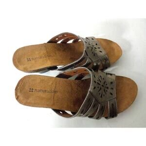 NATURALIZER Eunice US 6.5M Bronze smooth laser cut Slide Sandals Shoes 3" heel