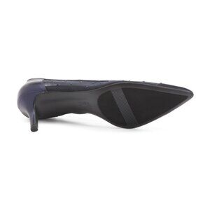 cushioned footbed, grip sole, mesh overlay, faux leather trim, rhinestone embellished, brand logo accent