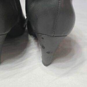 These Naturalizer gray booties are designed for women in size 5.5 M, with a mid-height cone heel for added comfort. The synthetic upper material and zip closure make them durable and easy to wear, while the wide calf width ensures a perfect fit for those with a wide foot. Whether it's for winter, summer, fall, or spring, these booties are a versatile and stylish addition to any wardrobe, combining a sleek design with the brand's signature comfort features. Some scuffing and damage on the heel of the boots as shown in the pictures.