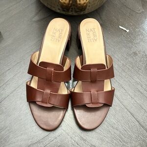 NATURALIZER JOEY LEATHER BLOCK HEEL SLIDE SANDALS