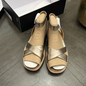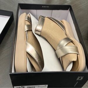NATURALIZER Jamila Flat Sandals Women's Shoes In Warm Silver Metallic (WIDE)