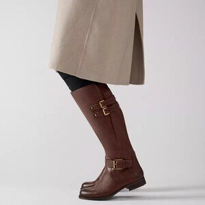 Beautifully polished with pebbled leather, wraparound straps and gold-toned buckles, this comfortable, tall shaft boot is always along for the ride. A little goring goes a long way, too. Get there beautifully. Comfortable tall shaft boot with glossy buckles. Leather upper with a round toe. Full-length side zip closure and back pull tab. Elastic goring panel at the calf for extra flexibility. Comfort technology. Non-slip outsole. 1" block heel. 14.5" boot shaft; 14.3" calf circumference. Consciously packaged: 100% of our shoe boxes are made of 80% recycled paper + soy-based ink. WHY YOU'LL LOVE IT: Ingenious elegant utility. Boots crafted with endless versatility and style to get you there beautifully.