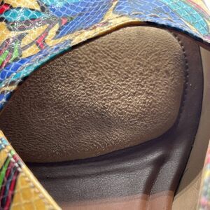 Gently used condition. Beautiful colors. No holes, rips, or stains. Looks like some inside cracking as noted in size picture. Some normal wear on heels and sole as shown in pictures.